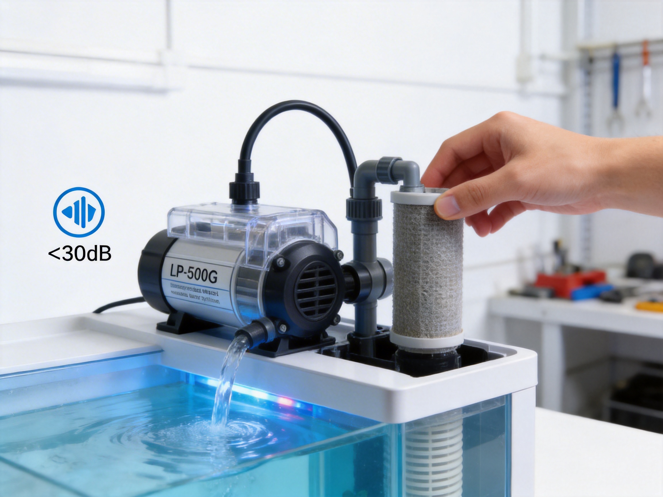 Attach the filter cartridge to the pump (follow the instructions in the manual) and place the pump inside the tank’s designated compartment. Connect the pump to the power source (ensure the voltage matches the tank’s specifications). The pump will start circulating water immediately.