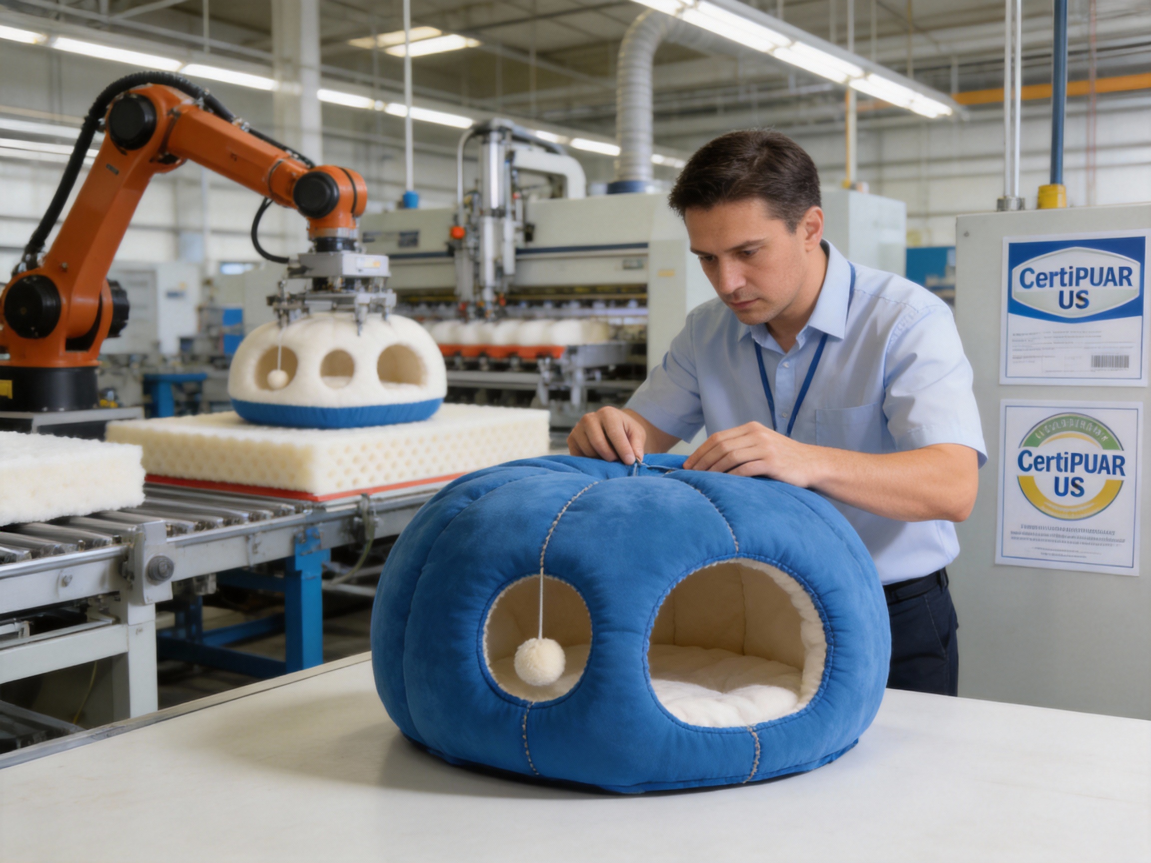 The DME series pudding cat nest isn’t just a well-designed product—it’s the result of decades of manufacturing expertise and innovation. The company behind it (a leading global pet and aquarium equipment manufacturer with over 30 years of experience) has built its reputation on quality, R&D, and customer-centric design. Let’s explore the key factors that make this product stand out in terms of manufacturing: