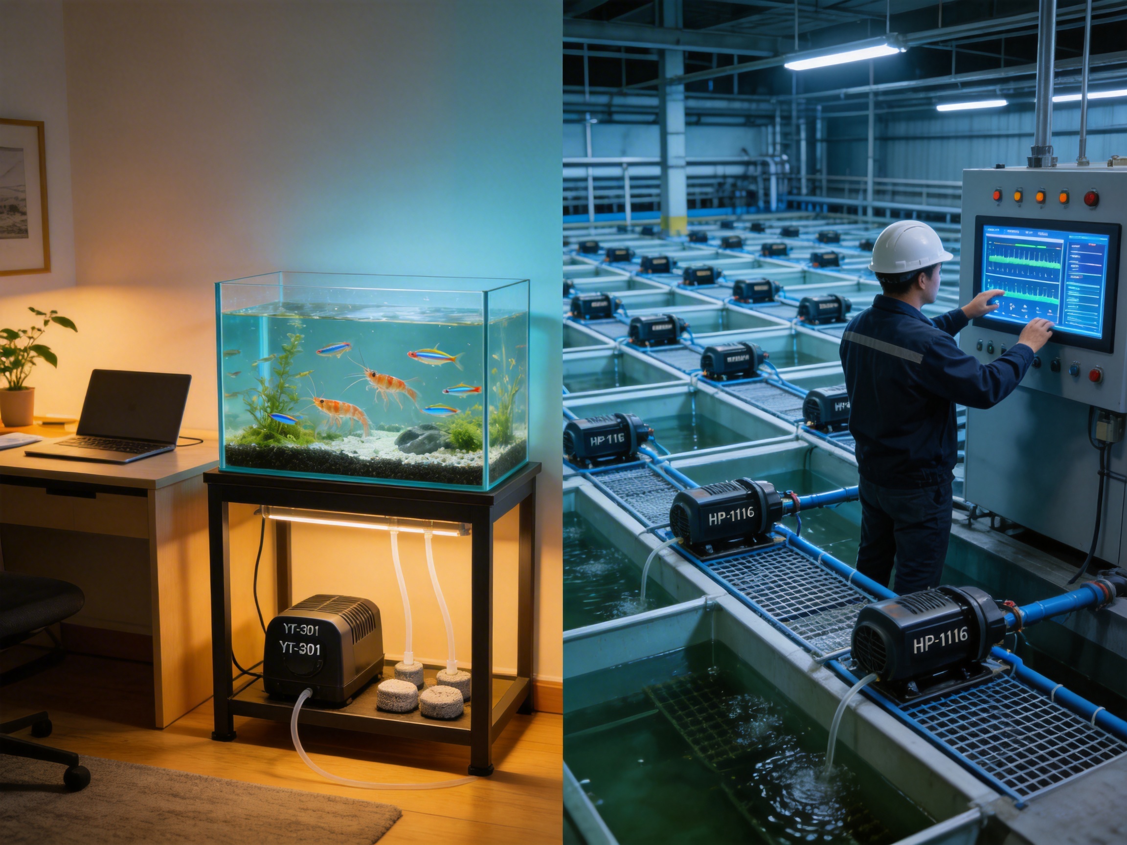Traditional piston-based air pumps dominate the market but have flaws: they’re noisy, require oil changes (risking water contamination), and have fixed airflow rates. The HT/HP/YT Series solves these issues with magnetic vibration technology, a paradigm shift in aeration design.